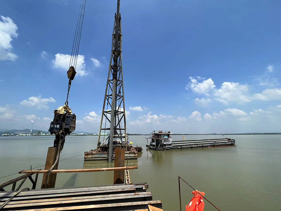 6月12日上午,隨著打樁機(jī)一聲轟鳴,華津金屬產(chǎn)業(yè)園萬噸級(jí)碼頭項(xiàng)目首根鋼管樁成功入海,標(biāo)志著華津黑色金屬碼頭項(xiàng)目主體工程建設(shè)進(jìn)入實(shí)質(zhì)性施工階段。
