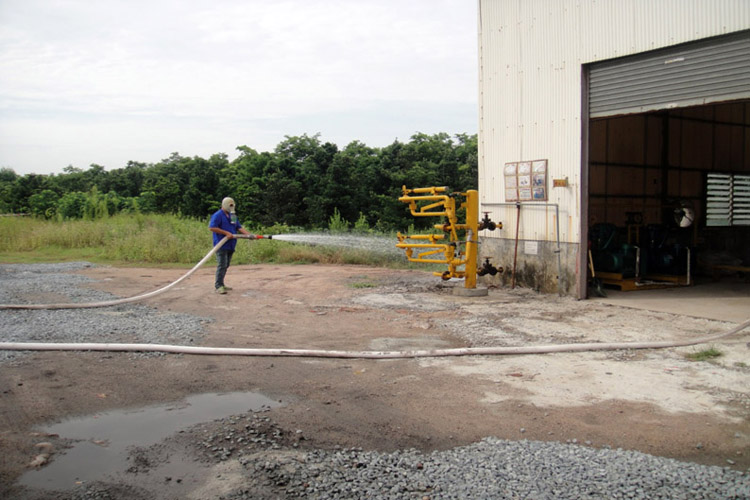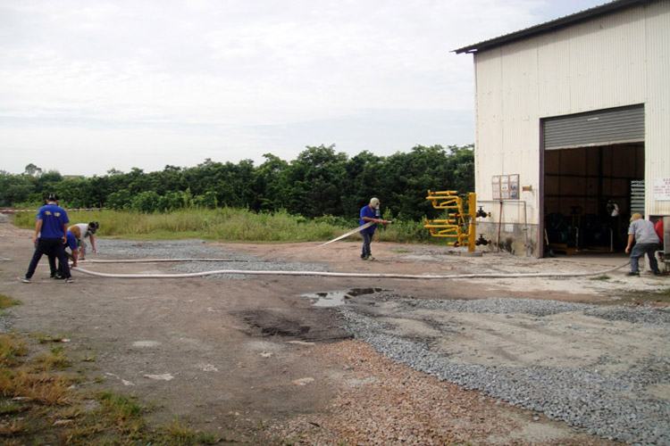 上午8:30,演練正式開始,當值員工發(fā)現液氨站疑似泄漏,立即向事故現場主管報告有關事項,現場主管用對講機向現場總指揮與總指揮匯報了有關事件,并由現場總指揮建議總指揮進入二級應急狀態(tài)。隨即按響報警鈴聲,其他的工作人員聽到鈴聲后,馬上進入緊急戒備狀態(tài),按照早已制定的《應急救援預案》的相關安排,迅速組成搶險隊伍,同時拉起警戒線,通知醫(yī)療救護小組及消防隊隨時待命,使應急救援工作迅速、高效、有序的開展,將“事故”造成的人員傷亡、財產損失和環(huán)境破壞降到最低限度。經過一輪緊張而有序的搶險、救援、搶修工作,現場很快得到控制,演習順利完成。